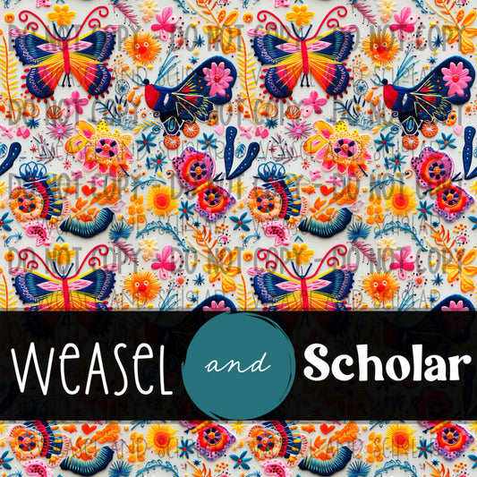 Folk Art Butterflies, Faux Embroidery Seamless Pattern, Digital Paper File, Tileable